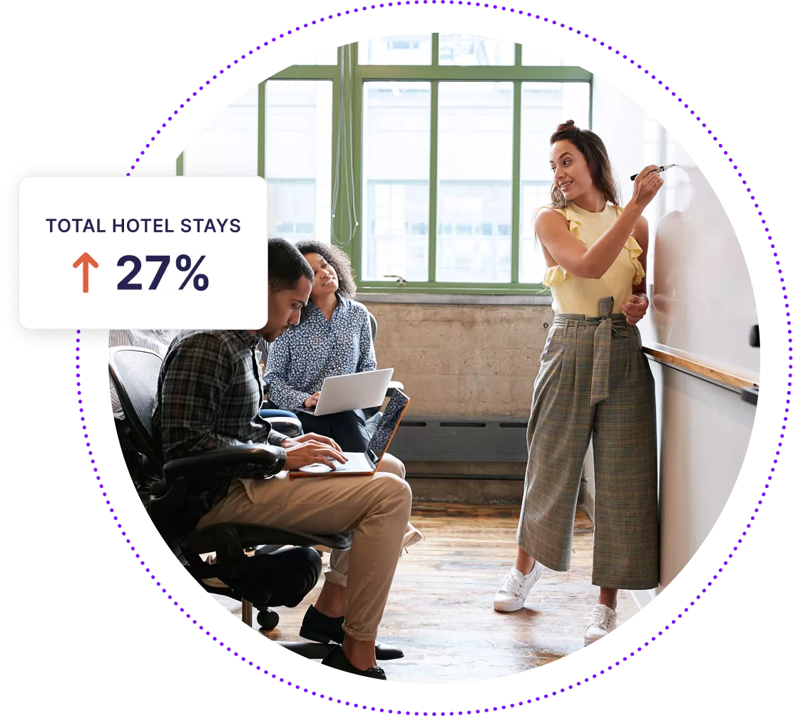 Nous utilisons des données dans notre IA pour diffuser des annonces aux voyageurs actifs. Cela nous permet de les impliquer et de les convertir au bon moment avec le bon message, augmentant ainsi les visites et les dépenses des bons voyageurs, tout en démontrant l'impact économique.
