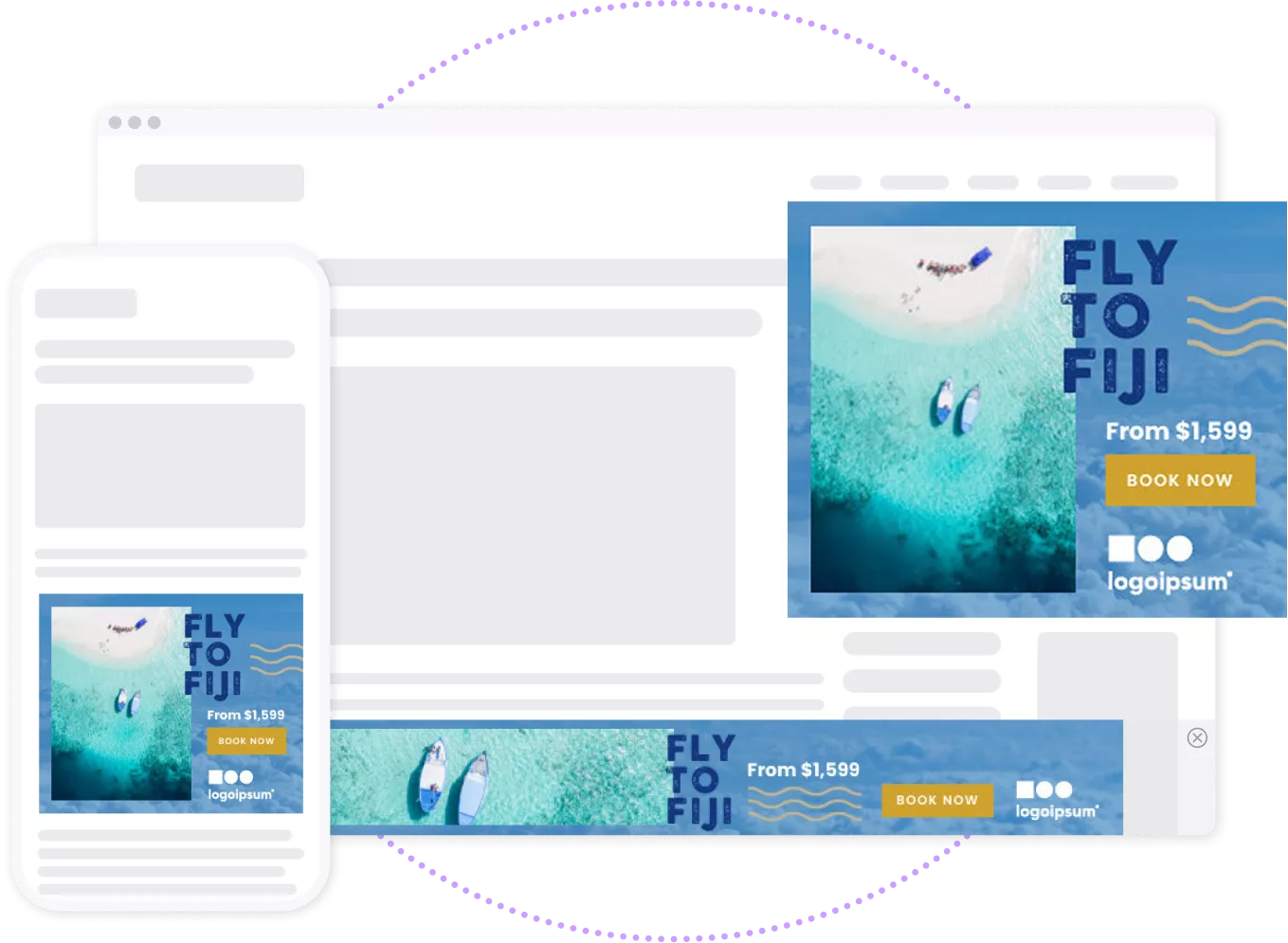 A publicidade gráfica da Sojern ajuda você a se apresentar aos viajantes enquanto eles sonham, planejam e reservam sua próxima viagem. Com visuais atraentes, segmentação inteligente e criatividade criada para funcionar, você pode se manter em mente e gerar mais reservas pela web.